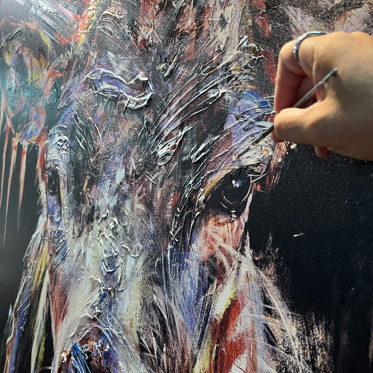 On dit qu’une image vaut mille mots. Forte d'une grande formation liée à l'enseignement des arts et à la peinture de performance, l'artiste s'inspire des multitudes de sensations visuelles que l'on retrouve autour de nous dans notre environnement. Lignes brisées, surfaces planes, points, chaos puis ordre. En savoir plus
