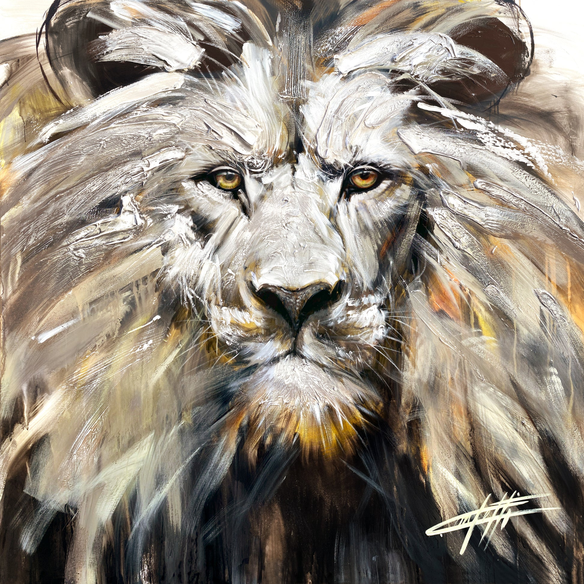 🔴 Rugissement Royale , le lion, tableau original, moderne avec grande texture par l'artiste Confetti