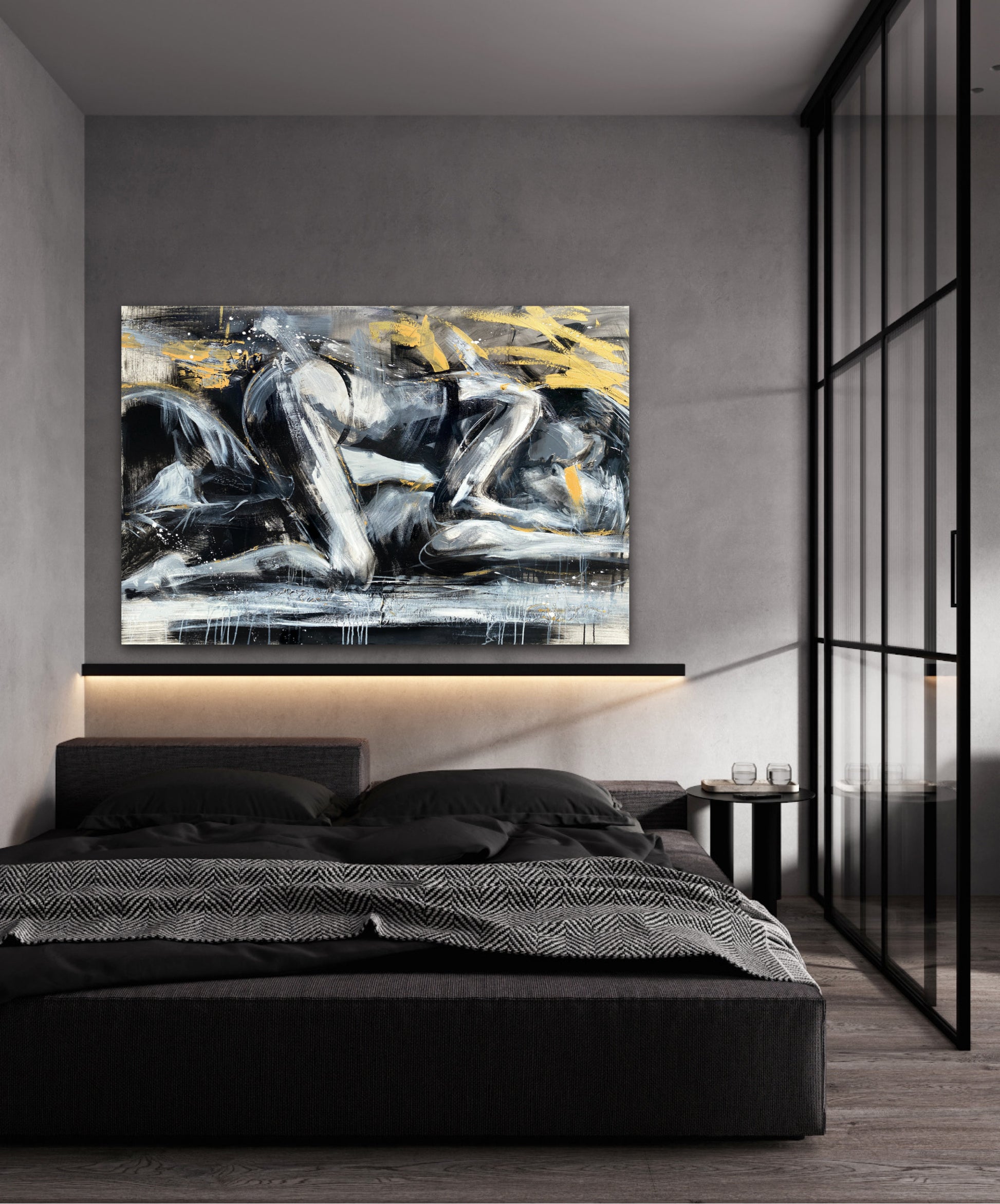Fifty Shade'' I Want u too'', peinture sexy couple toile sensuelle, lit, art print avec texture par Confetti l'artiste moderne, passion, abstraite