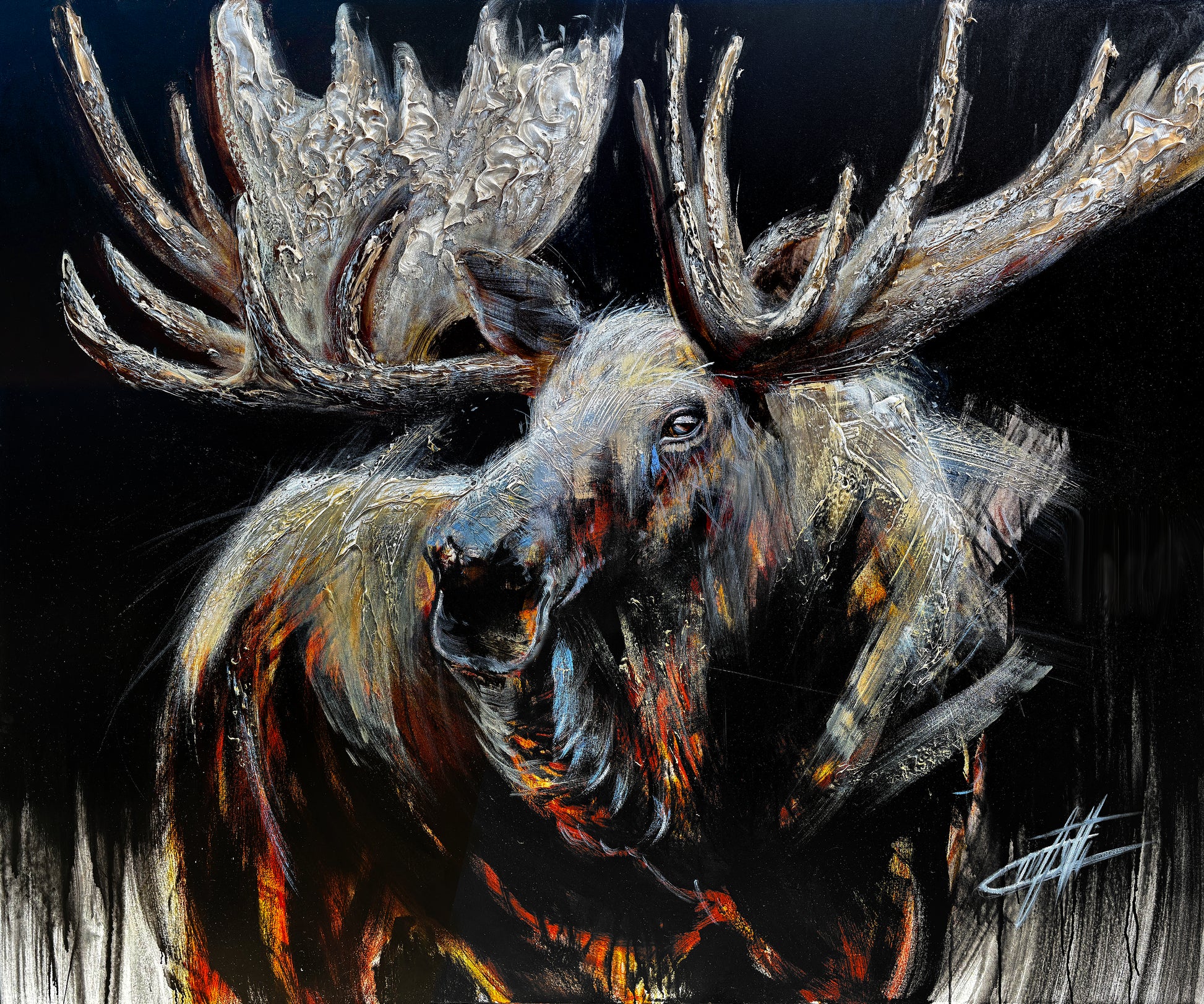 🔴Majesté du nord, l'orignal, l'original de l'artiste Confetti avec beaucoup de texture, coloré, orignal, abstrait