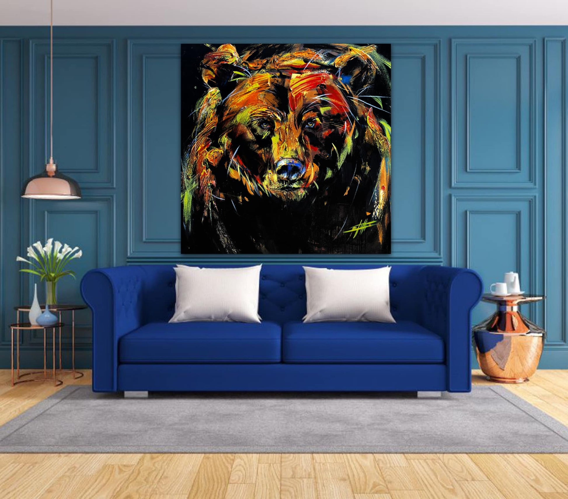 • L'œuvre est livrée en rouleau sans cadre en bois, il vous suffit de la faire tendre par un encadreur proche de chez vous.