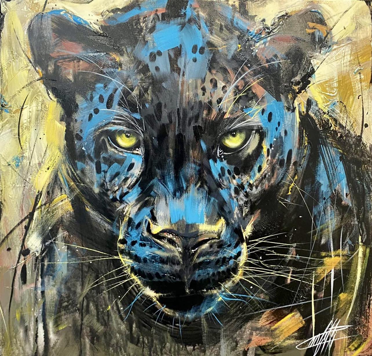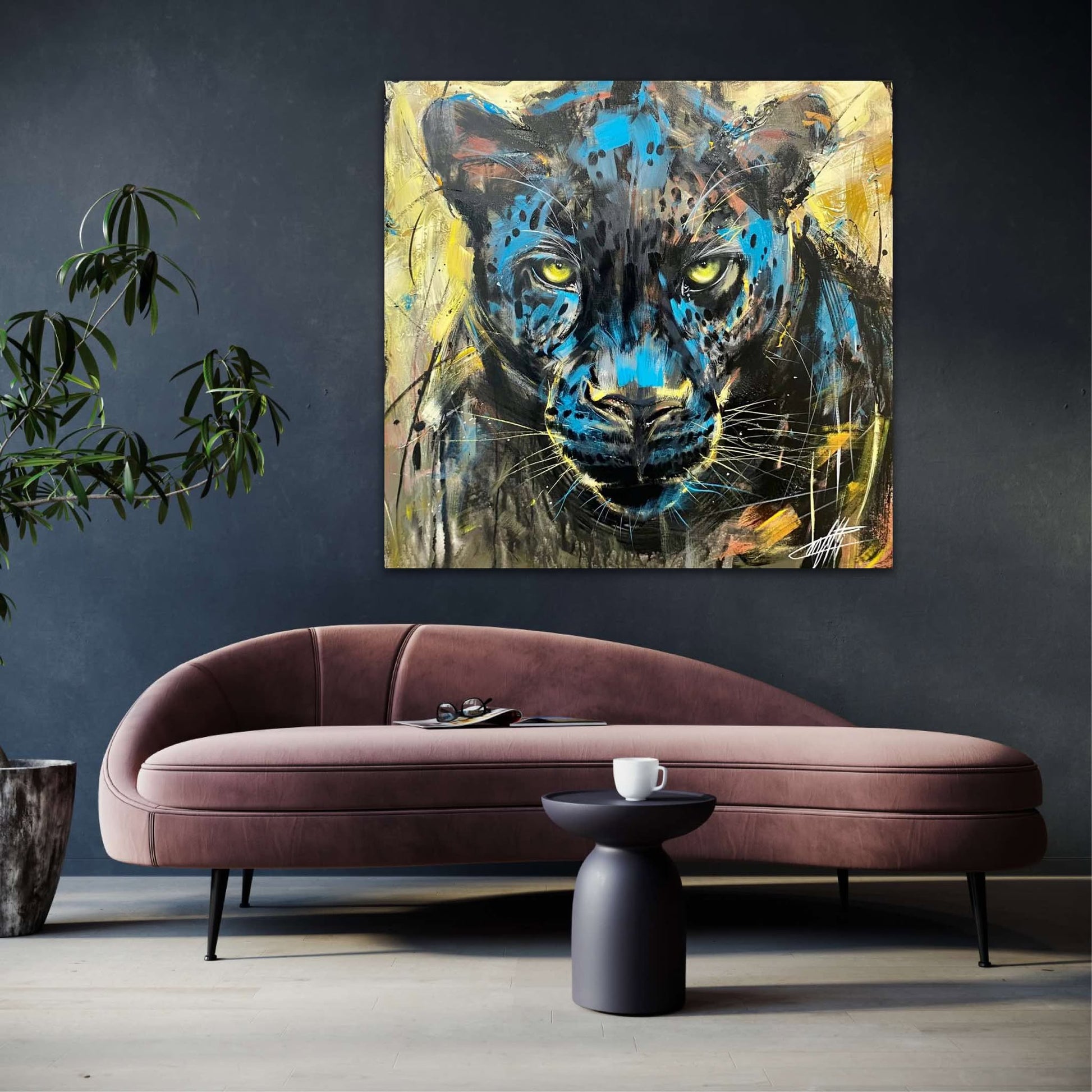 Ombre bleue, impression d'art moderne de l'artiste Confetti, panthère, moderne