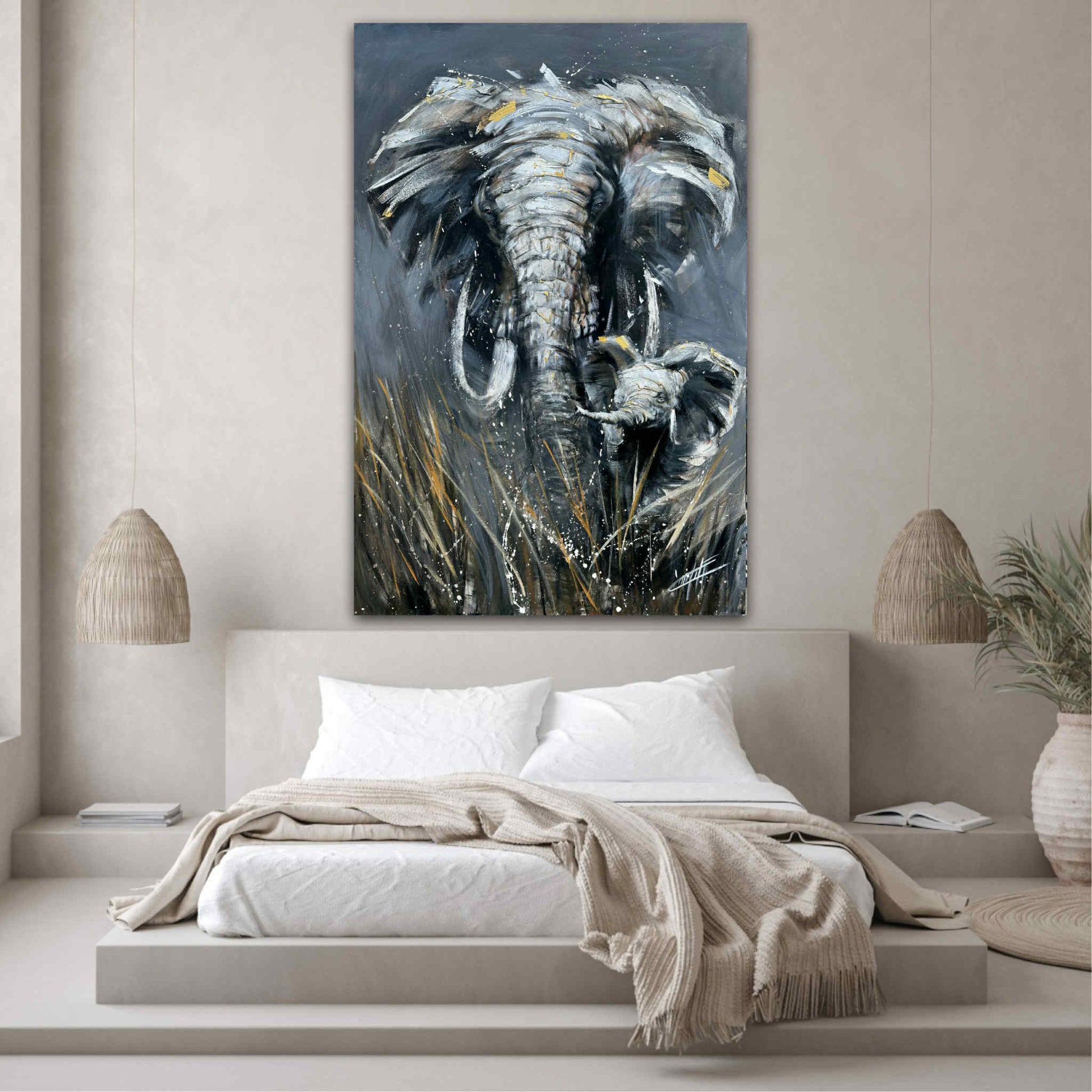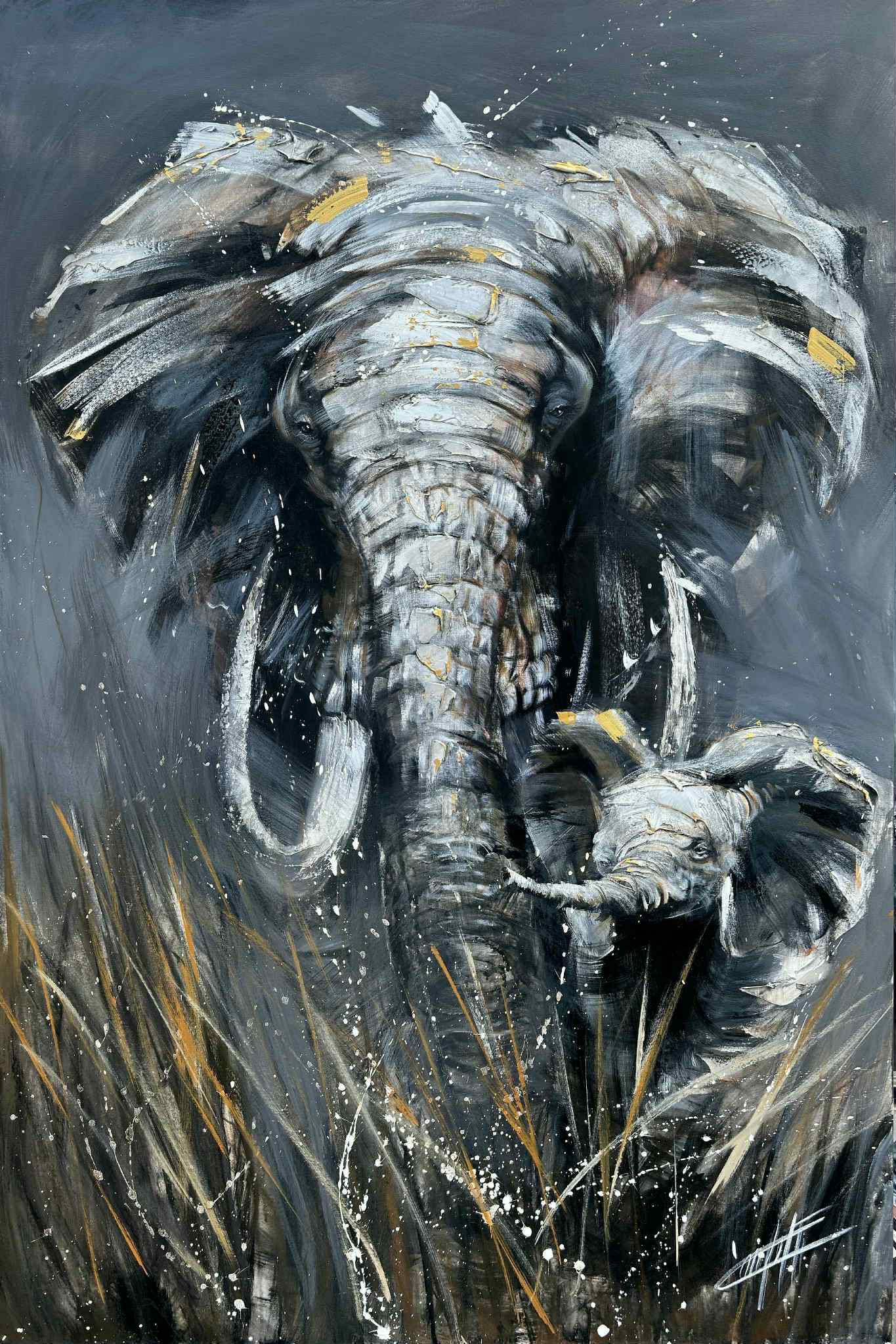 The breath of ivory, art print painting by Confetti artist with a lot of texture, elephant, abstract