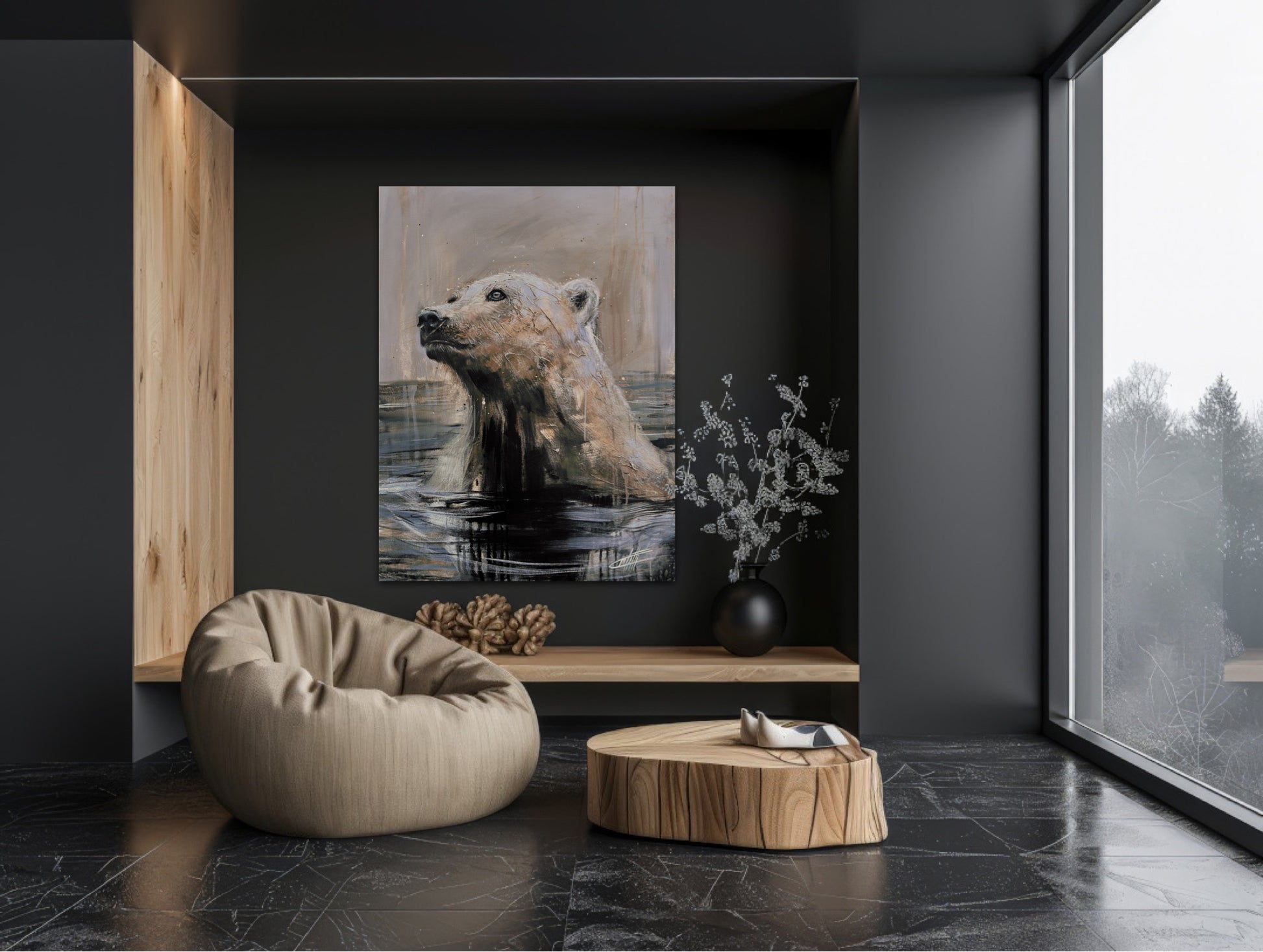 The ice guardian, art print of a modern polar bear by Confetti Artist, textured, warm and earth color, ice melted