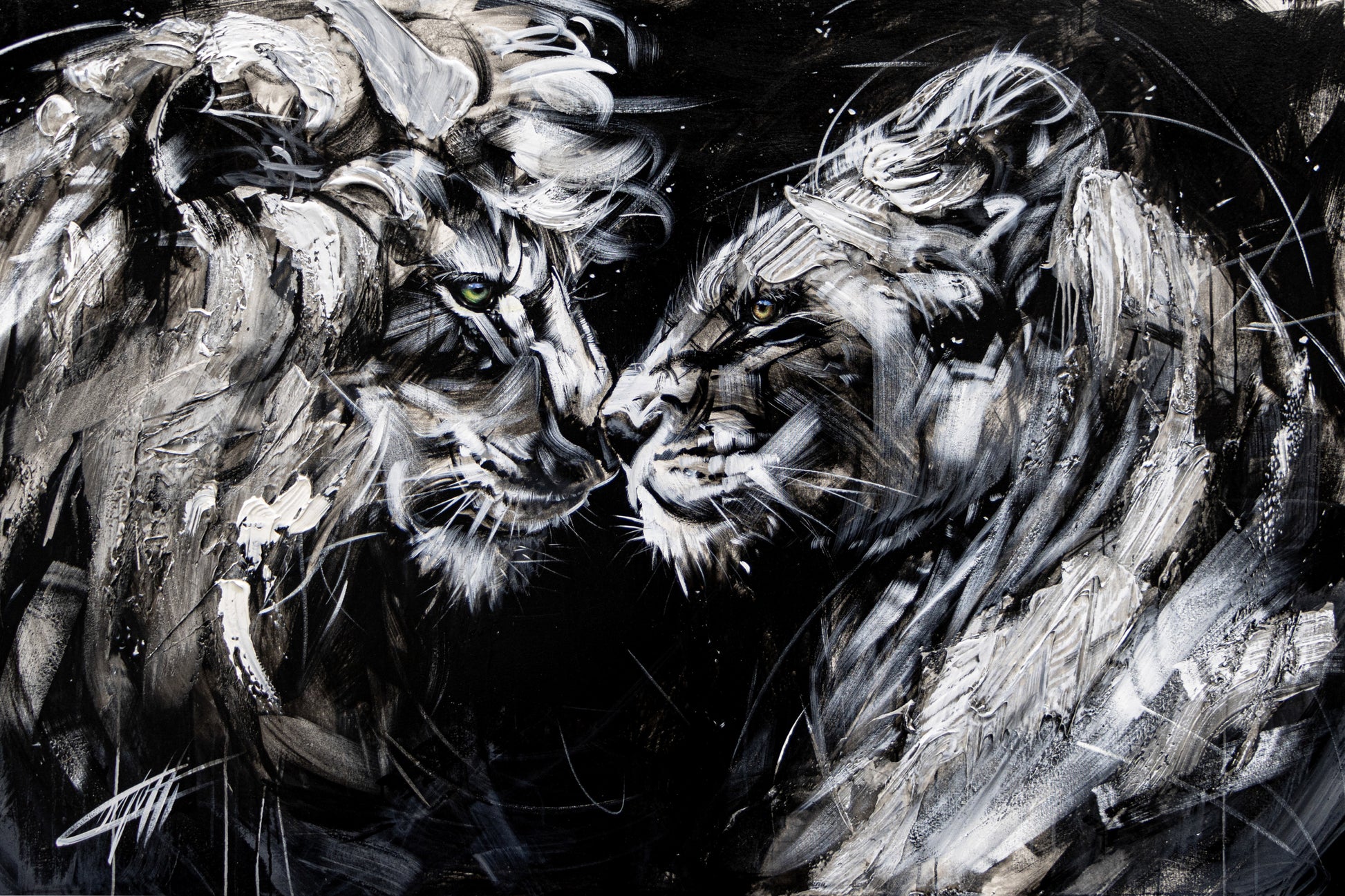Wild look, lion couple, art print by Confetti artist, textured, modern, abstract